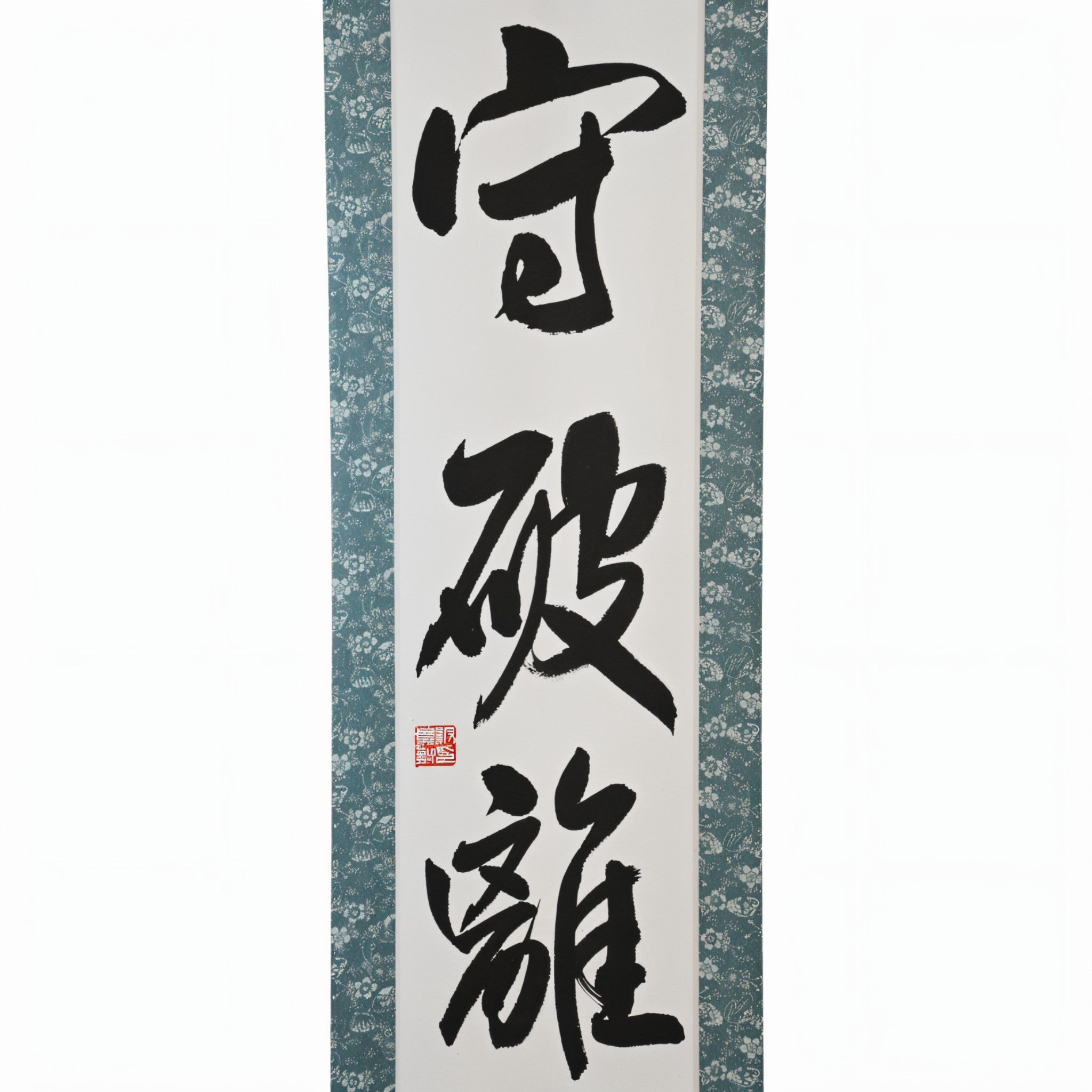 This Japanese calligraphy scroll features the timeless phrase 守破離 (Shuhari) — a profound teaching that captures the path of growth and mastery in all martial arts.