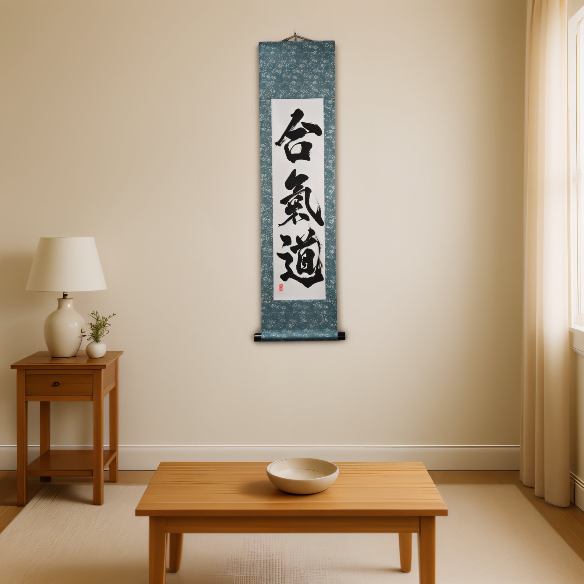Cada trazo de pincel refleja la esencia del Aikido: enfoque calmado, fuerza interior y la disciplina del movimiento. Al exhibir este pergamino, alineas tu espacio con la energía de la práctica, mejorando tu entorno de entrenamiento y motivándote a continuar en tu camino de crecimiento.